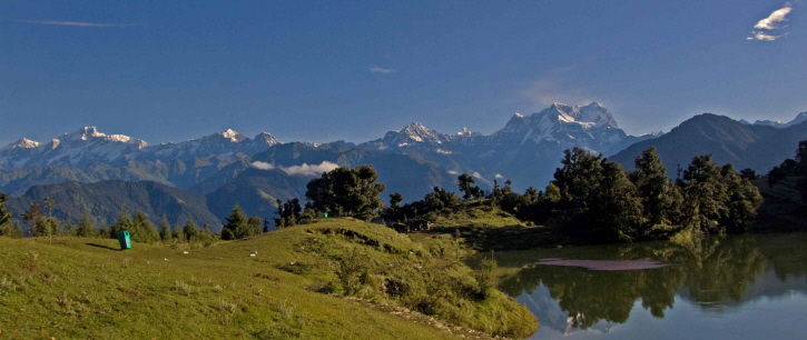 Morgenstimmung am Deoria Tal. Im Hintergrund erhebt sich das zentrale Garhwal-Massiv.